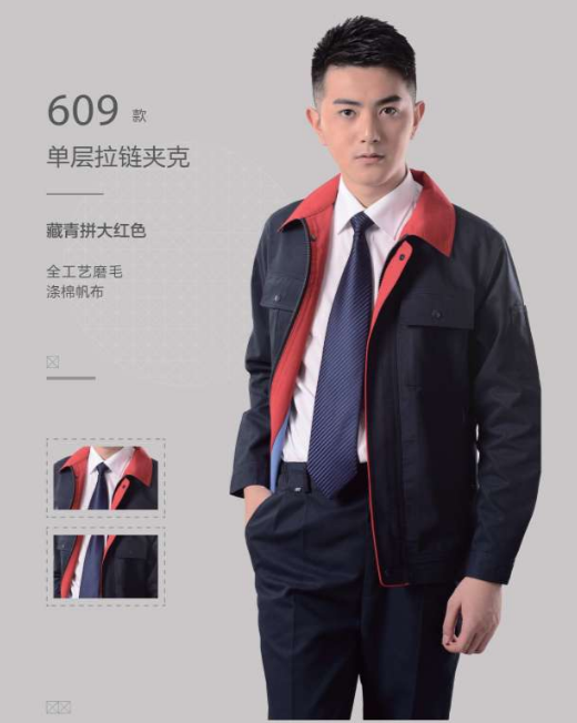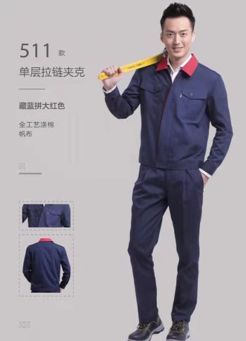 藏藍(lán)拼紅領(lǐng)勞保工裝