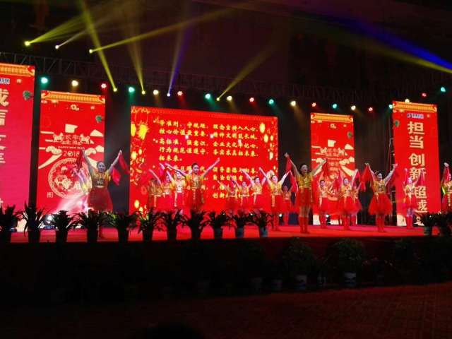 下午6點,隨著譚總攜集團(tuán)公司主管團(tuán)隊登臺向參會的全體員工致祝酒辭,集團(tuán)團(tuán)拜晚宴在熱烈的氣氛中正式開始。大家把一年來的辛勞和壓力暫時卸下,把酒共話,回顧過去,暢想未來。