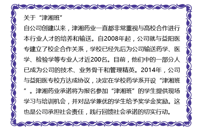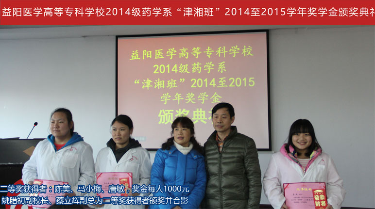 2015年12月17日下午三時(shí)許,益陽(yáng)醫(yī)學(xué)高等?茖W(xué)校(下文簡(jiǎn)稱為“益陽(yáng)醫(yī)專”)2014級(jí)“津湘班”獎(jiǎng)學(xué)金頒獎(jiǎng)儀式在津湘藥業(yè)總部辦公樓三樓會(huì)議