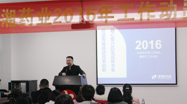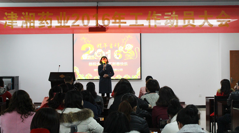 2016年2月13日上午10時,湖南津湘藥業(yè)2015年終總結(jié)匯報(bào)暨2016年工作動員大會在公司總部召開,公司主要領(lǐng)導(dǎo)、各部門主管和員工代表